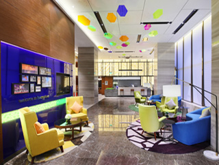 酒店設(shè)計(jì)簡(jiǎn)約時(shí)尚,擁有希爾頓歡朋特色的“HUB”大堂,集歡迎聚會(huì)休閑商務(wù)功能于一體。
