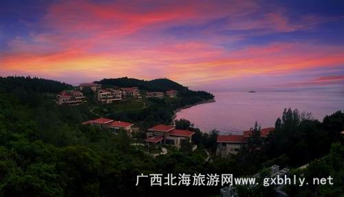 北海冠頭嶺山莊位于廣西北海市區(qū)西南,猶如一青龍橫臥海面。因坡嶺宛延起伏,狀如窿冠因而得名。冠頭嶺長(zhǎng)6公里,登峰客觀日出日落、萬頃海濤。晚上,海上漁火點(diǎn)點(diǎn),景色分外迷人。臨海一面海蝕景觀錯(cuò)落別致,姿態(tài)萬千。西南麓下海灣,海水清澈見底,巨大的礁石錯(cuò)落嶙峋,古跡龍王巖(兼陽石洞),因海浪侵蝕沙巖,壁基裸露,現(xiàn)在突兀參差的怪石奇觀。在冠頭嶺登山遠(yuǎn)望,海天一色,帆影點(diǎn)點(diǎn),令人頓覺心曠神怡。朝觀日出夕賞日落,聽海濤拍岸,看浪花卷起千堆雪,大自然的天籟美景,美不勝收。