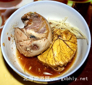 雞蛋仔/鴨蛋仔,就是拿孵化過的半成品煮熟,加上調(diào)料,價格要比一般的雞蛋鴨蛋貴很多。聽起來看起來都有點(diǎn)殘忍,不過吃過的人都覺得蠻好吃的,在鄰國越南也是很受歡迎的一道吃食。