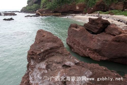 沒多久,海面上一片暗紅色的石頭呈現(xiàn)在我們眼前---火山公園! 這個景點是潿洲島上的一顆明珠,是火山遺跡的代表作,在火山石上仙人掌成片的旺盛的生長。在船上哼著那首老歌“陽光、沙灘、海浪、仙人掌,還有一位老船長......”從來沒有仔細體會這歌詞的意境,直到來這里,看到了,才覺得這歌真的很豐富.....