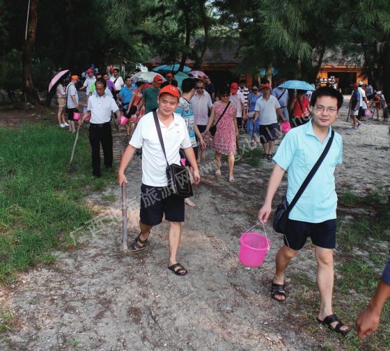 通過老朋友環(huán)球旅行社的王姐早早幫我們預(yù)定了趕海的行程,8月2號(hào)早晨,我們一行人來到海邊,挑上拿手的工具,奔向海灘去鳥~