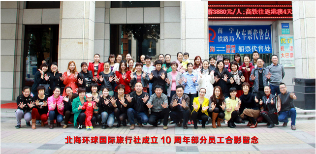 2015年2月1日,是北海環(huán)球國際旅行社成立十周年的日子,北海環(huán)球國旅成立十周年慶典于當(dāng)晚隆重舉行。感謝社會(huì)各屆人士的關(guān)心和支持。
