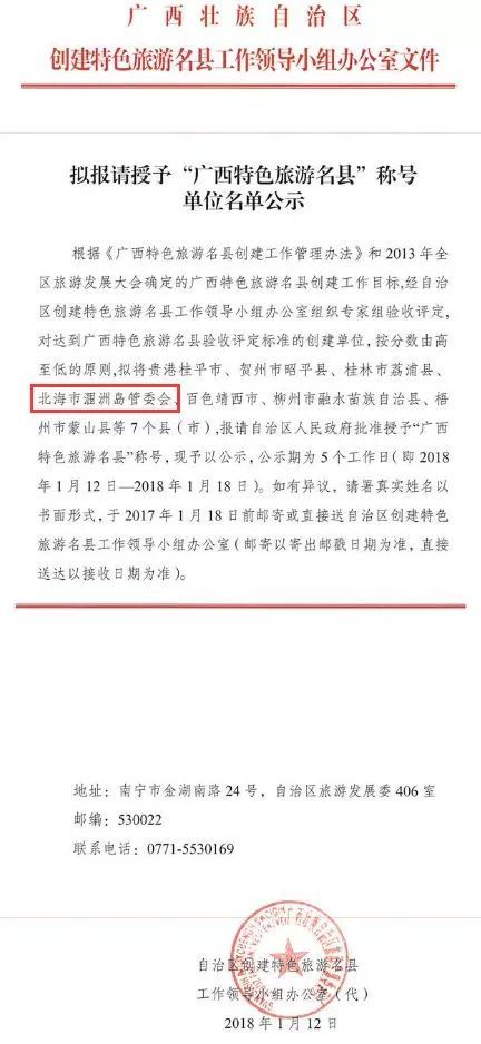 廣西北海旅行社1月13日訊 1月12日,旅小妹從區(qū)旅發(fā)委獲悉,自治區(qū)創(chuàng)建特色旅游名縣工作領(lǐng)導(dǎo)小組辦公室對擬授予“廣西特色旅游名縣”稱號的7個縣(市、區(qū))進(jìn)行公示,北海市潿洲島管委會名列其中。