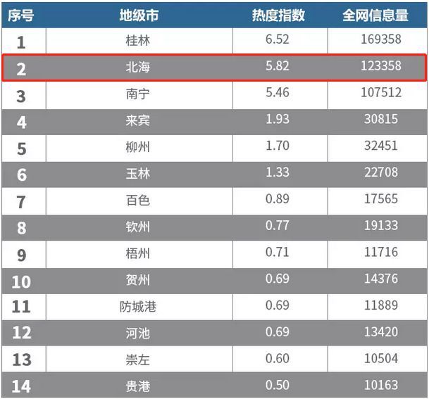 廣西北海旅行社1月23日訊 日前,《2017年12月廣西旅游行業(yè)數(shù)據(jù)報(bào)告》出爐,北海位列全區(qū)地級(jí)市熱度指數(shù)第二名,旅游景區(qū)熱度指數(shù)、酒店熱度指數(shù)也僅次于桂林。