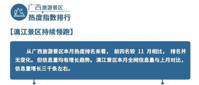 潿洲島景區(qū)排在全區(qū)第二位,銀灘景區(qū)也入榜前十。12月份,隨著熱門綜藝《三個(gè)院子》開播、獻(xiàn)禮自治區(qū)成立60周年大劇《北部灣人家》劇組前來島上拍攝等宣傳帶動(dòng)作用,潿洲島熱搜量一直居高不下。