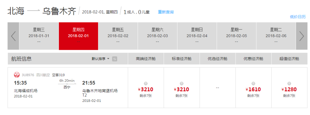 ▲四川航空官網(wǎng)航班訂票信息。(點擊查看大圖)