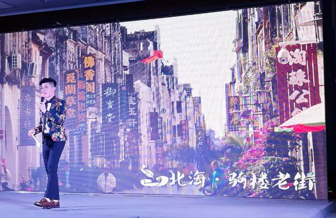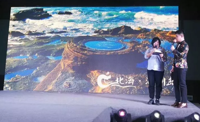 ▲現(xiàn)場(chǎng)通過(guò)大屏幕播放北海的人文風(fēng)光
