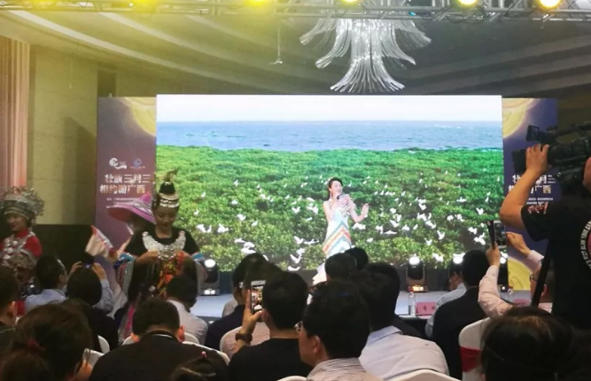 推介會上,不僅有身穿壯族傳統(tǒng)服裝的歌舞表演、自拍女王推介少數(shù)民族民俗,還通過PPT展示了廣西各大著名旅游景點、地標建筑及廣西古老的文化積淀,重點對北海濱海度假旅游、桂林山水休閑度假游、長壽之鄉(xiāng)休閑養(yǎng)生游、少數(shù)民族風情游、中越邊境探秘游等豐富多彩的旅游資源進行了介紹。