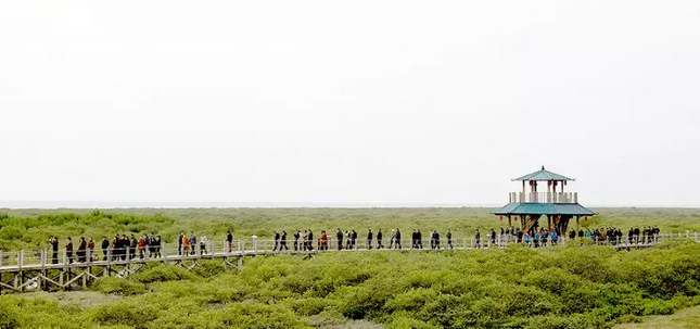 3000多畝紅樹(shù)林層層疊疊,郁郁蒼蒼,成群的白鷺于其中或翩然起舞,或怡然休憩。紅樹(shù)林下,招潮蟹、彈涂魚(yú)、小鱟、貝類等海洋生物隨處可見(jiàn)。招潮蟹身上鮮艷的紅色,彈涂魚(yú)有趣的跳躍行走方式、張大嘴巴引吭高歌的模樣,引來(lái)了一撥又一撥新奇的目光。