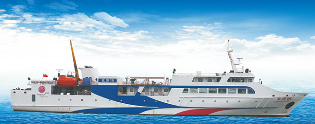 北海往返潿洲島的大慢船有北游15,是觀光船,有超大觀光甲板,載客量636人,航行時(shí)間110分鐘,有一層客艙、二層客艙、二層貴賓室、三層會(huì)議室。
