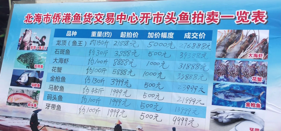 2018年8月18日,廣西北海市銀海區(qū)僑港鎮(zhèn)電建碼頭舉行了一場頭魚拍賣活動,其中一條重達152斤的龍頂(魚王)在經(jīng)歷了10分鐘的搶拍之后,最終276888元落槌!