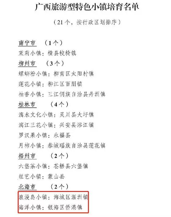 潿洲鎮(zhèn)、僑港鎮(zhèn)雙雙入圍廣西旅游型特色小鎮(zhèn)培育名單