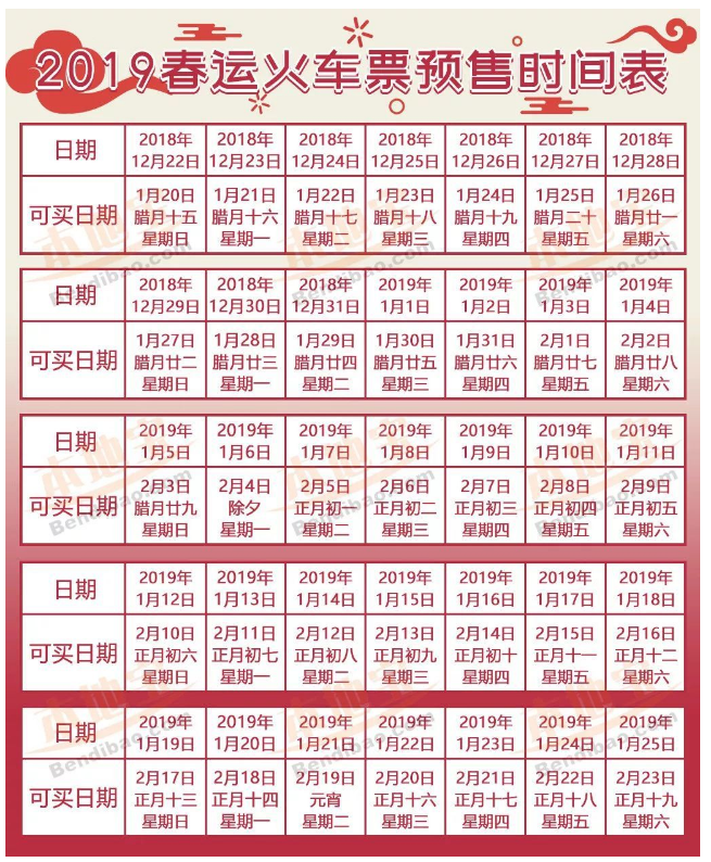 2019年春運購票時間表注意了