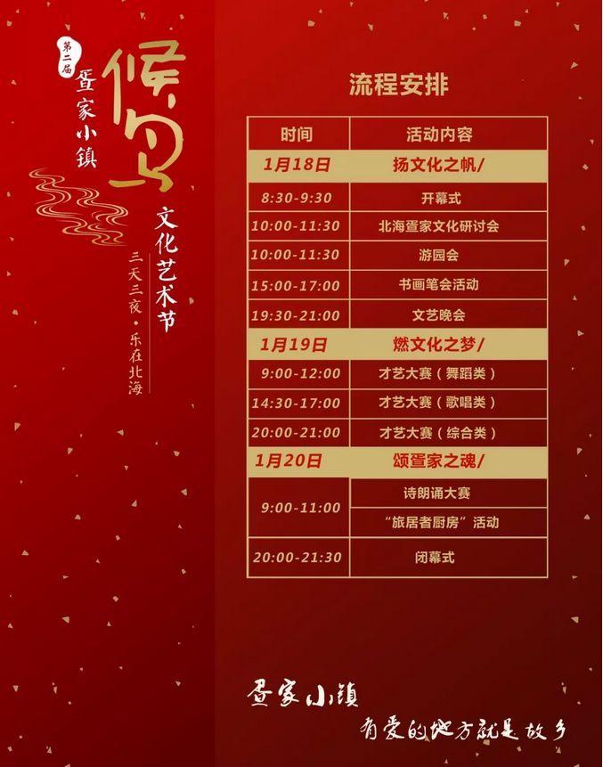 為積極響應北海市積極服務“候鳥”群體發(fā)展“候鳥”經(jīng)濟的指示精神,全力實施全域旅游城市建設大會戰(zhàn),深入挖掘、傳承、弘揚北海疍家文化精髓,打造疍家小鎮(zhèn)“旅游+文化”品牌,豐富“候鳥”群體的文化生活,不斷增強“候鳥”群體的歸屬感、融合感和幸福感。銀灘疍家小鎮(zhèn)將舉辦第二屆“候鳥”文化藝術節(jié)。