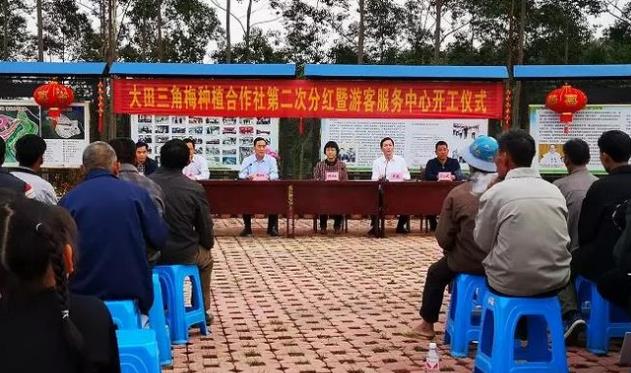 1月28日,合浦縣石灣鎮(zhèn)大田三角梅種植農(nóng)民專業(yè)合作社召開第二次分紅暨大田花谷鄉(xiāng)村旅游區(qū)游客服務(wù)中心開工儀式,北海市委常委、市紀(jì)委書記、市監(jiān)委主任繆佃江,北海市旅游發(fā)展委員會黨組書記陳鴻立,合浦縣委副書記羅鵬,出席大會共同見證分紅過程和游客中心開工儀式。
