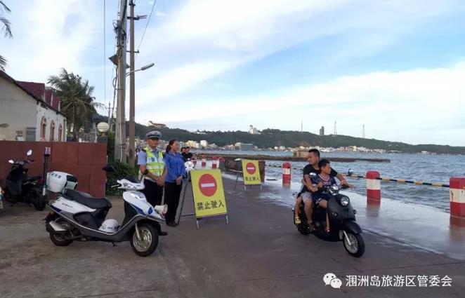 因西南浪過大,為保障廣大群眾和游客朋友們的生命安全,潿洲島旅游區(qū)管委會組織潿洲鎮(zhèn)政府、交警、綜合執(zhí)法等部門,近期對南灣街實行交通管制,在浪大期間禁止一切車輛和行人進(jìn)入南灣街,待浪潮退去再恢復(fù)通行。