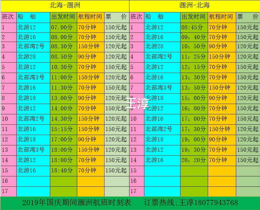 國慶節(jié)到潿洲島旅游,1號到7號每天開17個航班