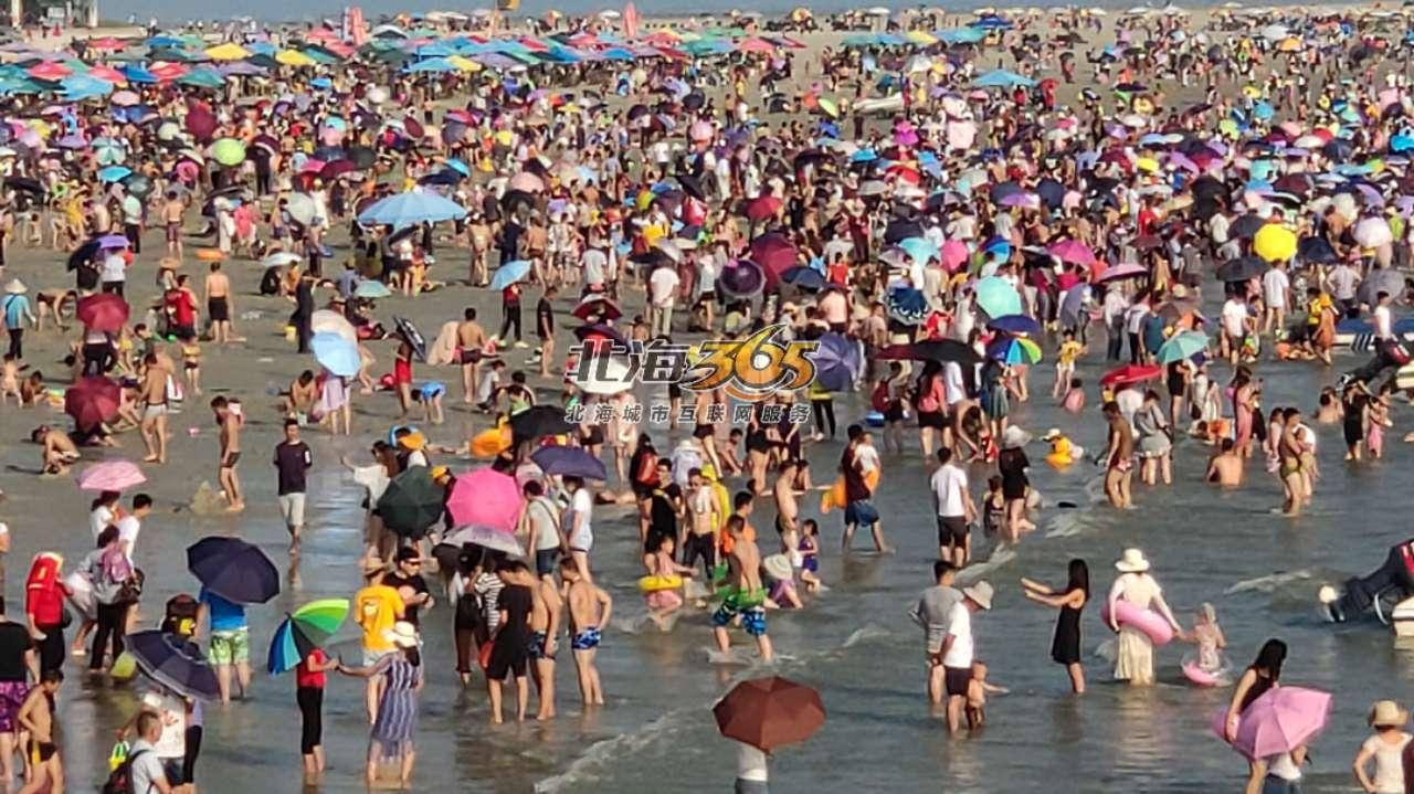 北海銀灘景區(qū),游泳注意安全,小孩容易走失