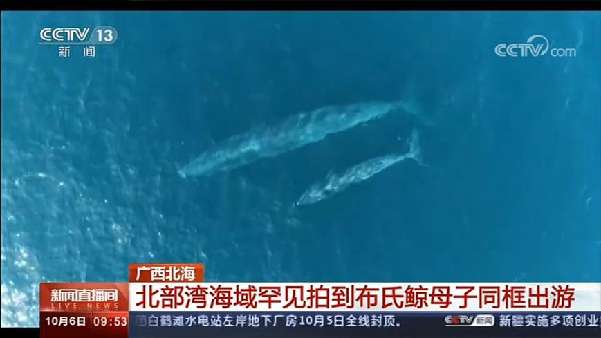 央視今早播出,潿洲島外海航拍發(fā)現(xiàn)一對(duì)母子布氏鯨