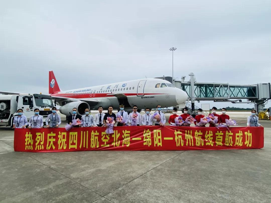 由四川航空公司執(zhí)飛的北海-綿陽-杭州航線,每天一班,每周一、三、五、七08:40從杭州出發(fā),11:35分到達(dá)綿陽,12:20從綿陽出發(fā),15:20到達(dá)北海,16:05從北海出發(fā),18:05到達(dá)綿陽,18:55從綿陽出發(fā),21:30到達(dá)杭州;每周二、四、六09:00從杭州出發(fā),11:50到達(dá)綿陽,12:35從綿陽出發(fā),15:25到達(dá)北海,16:10從北海出發(fā),18:05到達(dá)綿陽,18:55從綿陽出發(fā),21:30到達(dá)杭州。執(zhí)飛機(jī)型為320。