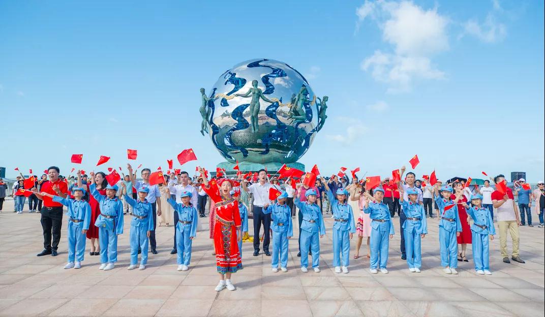 為慶祝中國共產黨成立100周年,推進黨史學習教育走深走實,市國資委黨委、北海銀灘度假區(qū)黨工委及北海旅游集團有限公司黨委聯(lián)合策劃舉辦了“感黨恩·跟黨走”2021建黨百年紅歌快閃活動,以“紅歌快閃”這種新穎的形式,回顧黨史、國史,引導廣大干部職工樹立良好的精神風貌和形象,激發(fā)社會各界人士愛黨愛國的情懷,在全市范圍內營造濃厚的愛國、愛黨氛圍,為黨和國家獻上誠摯的祝福。快閃活動在銀灘潮雕廣場、金海灣紅樹林以及老城景區(qū)分別舉行。在各個活動場地,隨著《歌唱祖國》《唱支山歌給黨聽》等熟悉的旋律響起,游客們不約而同停下腳步,加入到合唱隊伍,表達對祖國、對黨的深情祝福。黨恩滋潤、厚植大地、久久流淌。“黨有所召,我必有應”。在嘹亮的歌聲中,各有關部門干部職工及參與的游客群眾的精神境界再次得到升華,大家紛紛表示,今后一定繼續(xù)感黨恩、跟黨走,忠誠擔當、奮發(fā)有為,為黨的歷史續(xù)寫榮光!市國資委黨委委員、二級調研員、副主任陽玲,北海銀灘度假區(qū)黨工委委員、副主任胡春山,北海旅游集團有限公司黨委書記、董事長、總經理周國維,北海旅游集團黨委委員、副總經理黎向新,北海旅游集團黨委委員謝文浩等領導,北海旅游集團黨建聯(lián)盟共建單位廣西宇通建設工程有限公司、廣西圣泰建設有限公司負責人,以及游客、市民各界人士逾500人參加了此次快閃活動。文章來源于:北海市國資委、北海旅游集團