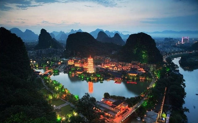 早餐后約8點(diǎn)前往榮獲兩項(xiàng)基尼斯記錄、被稱為世界上游覽方式最多的巖洞—【冠巖】(游覽120分鐘)(停車場至景區(qū)門口電瓶車費(fèi)用自理)景區(qū)群山竟秀、碧水傳情、洞奇石美。欣賞美妙經(jīng)貿(mào)經(jīng)貿(mào)絕倫的冠巖四絕-“天窗、海嘯、娕雪石、金”。乘坐軌道小火車陸地穿梭、乘觀光電梯空中覽勝、乘坐小木舟漂流神秘的地下暗河;穿過可以容納上千人的巖溶棕櫚樹大廳、欣賞滴水觀音,吊橋、張果老倒騎毛驢、冠帽山等。住桂林