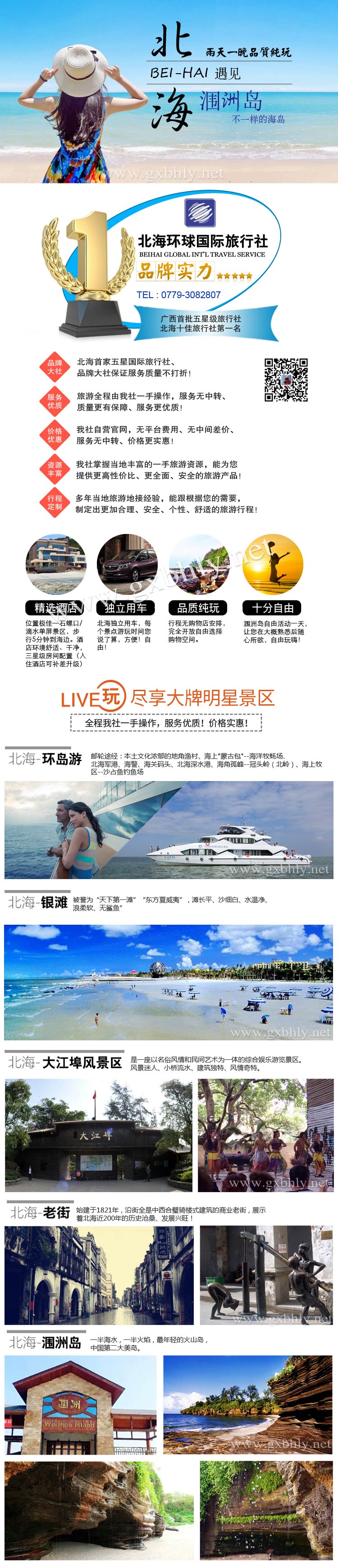 1、費(fèi)用已含:北!獫迧u往返船票300元/人、 潿洲島上島費(fèi)98元/人 、 北海環(huán)島游船票180元/人 大江埠風(fēng)景旅游區(qū)門(mén)票:138元/人)