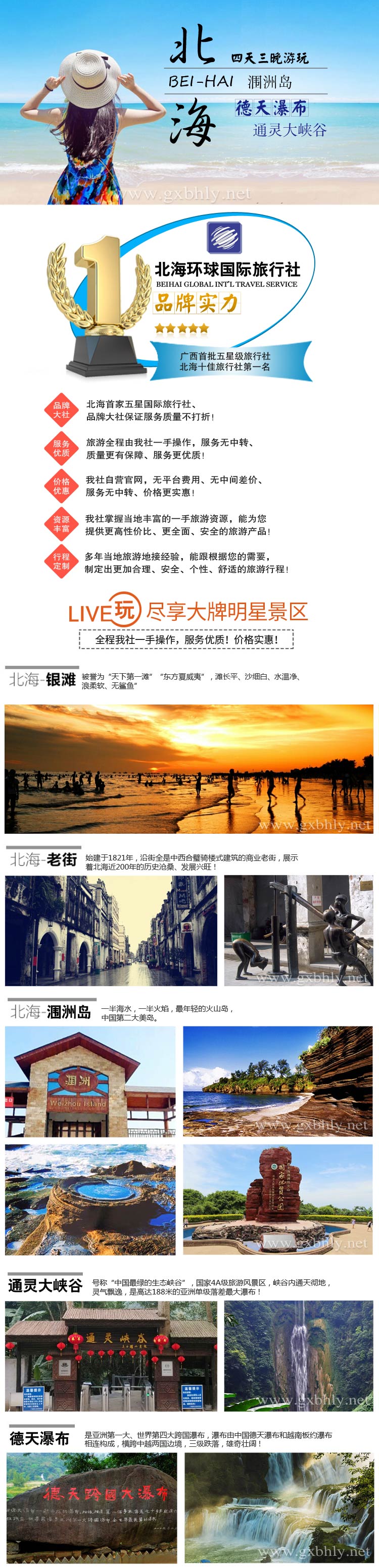 2.用餐:北海市內(nèi)不含餐,潿洲含一個中餐,德天通靈含一早三正15元/人/餐(十人一桌,八菜一湯)