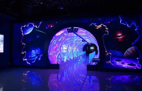 國(guó)內(nèi)絕無(wú)僅有的熒光純手工壁畫(huà),由日本著名熒光畫(huà)大師遠(yuǎn)山先生花了3個(gè)多月畫(huà)成,價(jià)值超三百萬(wàn)元。整個(gè)壁畫(huà)描述了海洋形成、發(fā)展過(guò)程和未來(lái)的遐想,即海洋的昨天、今天和未來(lái),在這里你可以完全放飛你的想象;該壁畫(huà)另一奇妙之處:如果關(guān)閉熒光燈,壁畫(huà)會(huì)變成一面白墻,什么也不見(jiàn),但是打開(kāi)熒光燈后,畫(huà)面栩栩如生,層次分明,你不得不驚嘆大師的高超技藝。
