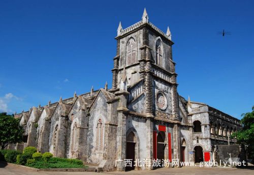 潿洲島天主教堂是法國文藝復興時期哥特式建筑,整個建筑群由教堂、男女 修道院、醫(yī)院、神父樓、育嬰室等組成。當時還沒有鋼筋水泥,建筑材料全取自島上的珊瑚、巖石、石灰拌海石花及竹木建造。一百多年來,潿洲島天主教堂雖經(jīng)歷了多少風雨的沖刷,仍保存完好。