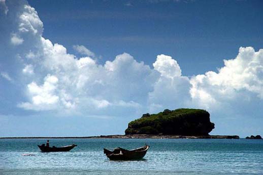 在高空鳥瞰,面積為25平方公里的潿洲島猶如一枚翡翠漂浮于湛藍的大海中。踏上這座火山島,撞入眼簾的是奇特的海蝕海積地貌與火山熔巖景觀――豬仔嶺憨態(tài)可掬,鱷魚石栩栩如生,滴水巖泉水叮咚,紅色火山巖好象剛剛噴發(fā)過……位于盛堂村的法國天主教堂,更是在19世紀末就落戶島上,材料全部取于島上的珊瑚、巖石,歷經(jīng)百年歲月,依然堅固如初。四百多年前,明代著名戲劇家湯顯祖游覽該島,寫下“日射潿洲廓,風斜別島洋”的詩句。
