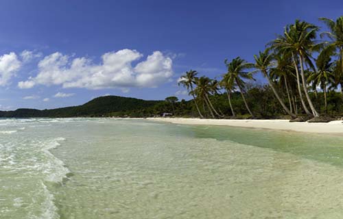 富國(guó)島屬于建江省是得天獨(dú)厚的旅游天堂,由胡志明市到富國(guó)島飛行時(shí)間約一小時(shí)。在富國(guó)島你可以出海海釣、浮潛、游泳,還有連綿數(shù)公里水清沙幼的海灘可以漫步。要坐船出海的話(huà),需要在酒店預(yù)訂,一般當(dāng)天就能成行。這里有著名的金沙灘和原始森林,不論你是上山或下海都是不錯(cuò)的選擇,F(xiàn)在馬來(lái)西亞海上游船每周都會(huì)送來(lái)300~500 名游客,說(shuō)明此地已受到世界著名旅游公司的青睞。