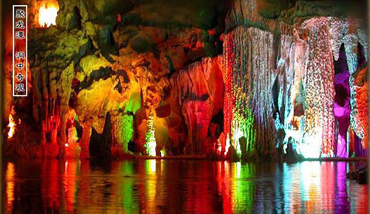 聚龍?zhí)兜木拔,全系鬼斧神工,不假人力雕飾。主要景點(diǎn)有:老人守寶、蟠桃盛會(huì)、貴妃新浴、石林奇觀、龍宮玉柱、海市唇樓等四十余處。加上配以?xún)?yōu)美的音樂(lè)和彩色的燈光,游客既可策杖觀光,又可乘船賞景,大有置身仙境之感。