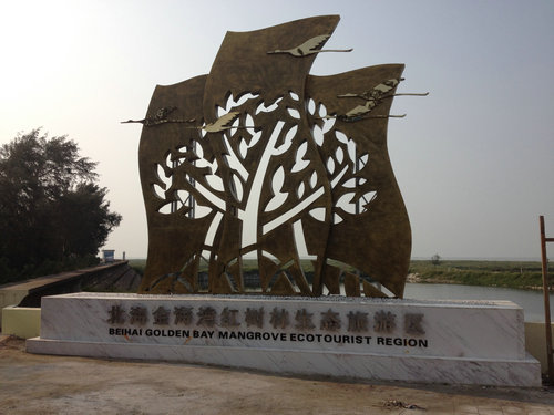金海灣紅樹(shù)林生態(tài)休閑度假旅游區(qū)是我國(guó)極富濱海濕地風(fēng)情和漁家文化內(nèi)涵的黃金景點(diǎn)。位于北海市區(qū)東南方約15公里處,與素有“天下第一灘”之稱(chēng)的國(guó)家4A級(jí)景區(qū)北海銀灘一脈相連。 整個(gè)景區(qū)面積約20平方公里,由紅樹(shù)林觀光帶、金灘和主園區(qū)三部份構(gòu)成。區(qū)內(nèi)擁有一片2000多畝的海上“森林衛(wèi)士”——紅樹(shù)林,百種鳥(niǎo)類(lèi)、昆蟲(chóng)、貝類(lèi)、魚(yú)、蝦、蟹等生物在此繁衍棲息,是我國(guó)罕見(jiàn)的海洋生物多樣性保護(hù)區(qū)。在這里可欣賞群鶩飛天,藍(lán)天碧海,紅日白沙的詩(shī)意畫(huà)卷,詩(shī)人王勃的“落霞與孤鶩齊飛,秋水共長(zhǎng)天一色!鼻Ч琶湓谶@里可得到驗(yàn)證。(門(mén)票價(jià)格:105)