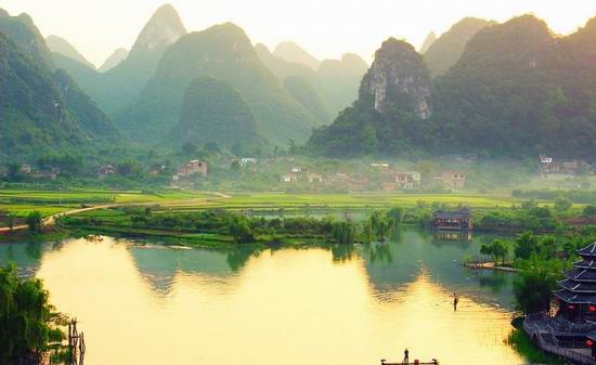 “桂林山水甲天下,陽(yáng)朔山水甲桂林”。陽(yáng)朔位于廣西壯族自治區(qū)東北部、桂林市東南面,始建于隋朝開皇十年(公元590年),已有1400多年歷史?h城距桂林市區(qū)陸路65公里、水路83公里。全縣面積1428.38平方公里,總?cè)丝?0萬(wàn)人。陽(yáng)朔是馳名中外的旅游勝地,旅游資源十分豐富,為典型的喀斯特巖溶地貌;漓江流經(jīng)境內(nèi)的63公里河段是漓江風(fēng)光最精粹部分,是甲天下的桂林山水精華所在地?h境內(nèi)山川秀美,景觀奇特,其特點(diǎn)是:“山青、水秀、洞奇、石美”!肮鹆稚剿滋煜,陽(yáng)朔堪稱甲桂林”高度概括陽(yáng)朔山水在世界所處的地位。全縣擁有奇特山峰2萬(wàn)多座,大小河流17條,250多個(gè)自然景點(diǎn)和人文景觀。