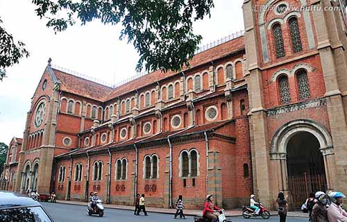 胡志明市是一個(gè)風(fēng)景優(yōu)美的城市,美麗的西貢河繞城而過(guò),景色迷人,乘游船泛舟西貢河,欣賞兩岸 胡志明市景色,別有一番情趣。市內(nèi)的國(guó)光寺、舍利寺、永嚴(yán)寺、天后廟、圣母大教堂、草禽園、查匈植物園、騷壇公園等都是游覽勝地。查匈植物園是最美的園林。圣母大教堂位于第一郡,為法國(guó)人所建,其造型獨(dú)特,風(fēng)格類(lèi)似于法國(guó)的巴黎圣母院,是胡志明市最大天主教堂,有唱詩(shī)班,可容納數(shù)百人做禮拜.踏上胡志明市,還有機(jī)會(huì)參觀那些具有法式風(fēng)格和美式風(fēng)格或具有歷史紀(jì)念意義的建筑物。近年來(lái),許多美國(guó)人紛紛到越南旅游,一個(gè)重要的緣由是當(dāng)年他們?cè)谠綉?zhàn)時(shí)留下了難解的情結(jié)。
