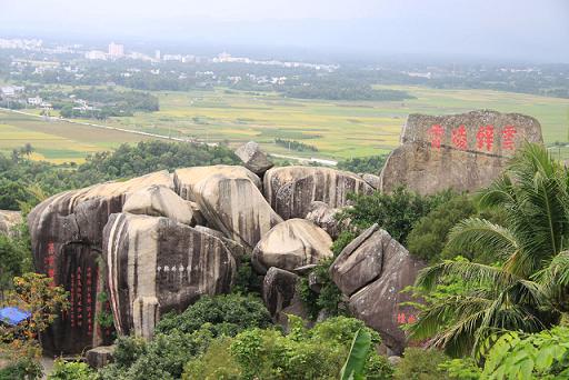 電視劇連續(xù)劇《紅樓夢》片頭中有一塊神姿仙態(tài)的“飛來石”,它就在被稱為“海南第一山”的東山嶺上。東山嶺風(fēng)景區(qū)在萬寧市東2公里處,因三峰并峙,形似筆架,歷史上又叫筆架山,是海南開發(fā)較早的旅游景點之一。曾與五公祠、鹿回頭、天涯海角等景點齊名,素有“海南第一山”之稱。東山嶺面積有10平方公里,海拔只有184米高的東山嶺遍山都是奇石,前面提到過的那塊石頭就是“一線天”勝景之處的風(fēng)動石,它重達(dá)百余噸,能在海風(fēng)的吹拂和人力的推搖下產(chǎn)生晃動。東山嶺瀕臨南海,景色十分秀麗。嶺上還有多處古跡和廟宇,均為省重點保護文物,其中潮音寺尤為海外僑胞重視。