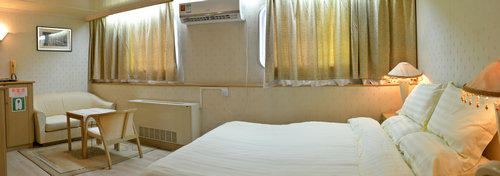 油輪內(nèi)置豪華海景房、豪華海景蜜月套房、海景雙人房、海景單人間、海景四人間、標準雙人間、標準四人間、標準八人間、標準十六人間,共69間不同類型的客房,可供近400人入住,油輪上還設有慢搖吧、咖啡廳、棋牌室、燒烤吧、自助餐廳、包廂、免稅商場等餐飲休閑設施、游客只需提供身份證即可快速辦理通行證,憑護照游客可享受落地簽便捷出游。目前,該航線實行4天一個航班,今后將擇機實行兩天一班,以滿足航線發(fā)展的需求。