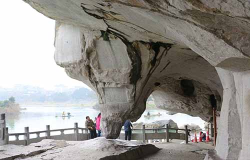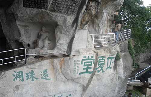 還珠洞位于伏波山的山腹,坐船或從陸地步行入洞。洞內(nèi)高4—6米,寬 6—8米,總長(zhǎng)120余米,面積600余平方米。還珠洞內(nèi)的文物石刻很多,是伏波山的精華所在。還珠洞還是唐朝除西山的慶林寺外,又一個(gè)佛教圣地。信奉佛教的僧徒們,在洞內(nèi)雕塑了許多佛像。千佛巖中有許多尚未成形的粗鑿佛像,猶如風(fēng)化剝蝕的斧鑿痕。