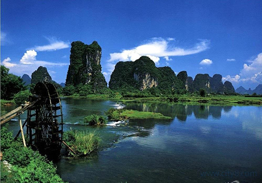 陽朔十里畫廊位于陽朔月亮山,因沿路風(fēng)景秀麗,如詩如畫,被稱為陽朔十里畫廊。主要景觀有海豚出水、火焰山、龍角山、青厄風(fēng)光、古榕美景等。