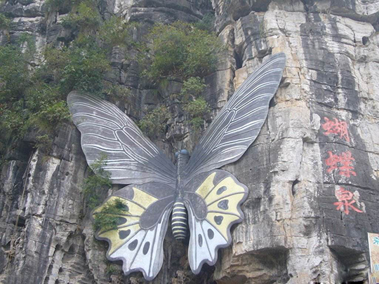 蝴蝶泉觀賞園:位于十里畫廊中部,是由一些愛好者投資,依自然地勢精心修建,與蝴蝶生存相似的自然生態(tài)環(huán)境。游客可在園內(nèi)與蝴蝶同嬉同樂,觀賞五彩繽紛、天女散花般的萬飛舞美景,體驗人與自然和睦相處的奇妙感覺。園內(nèi)設(shè)有蝴蝶公園,蝴蝶保育區(qū)、蝴蝶科教展室、蝴蝶工藝品廠,觀園索道等。