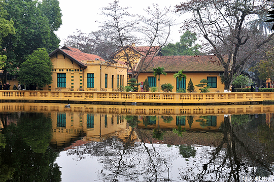 胡志明故居位于巴亭廣場旁的主席府內(nèi)。主席府的主體建筑是一棟由德國人建的法式別墅,頗為豪華,但如果以為這就是你要參觀的胡志明故居可就大錯特錯了!生活極為簡樸的胡志明其實一直住在別墅旁的電工宿舍里。 故居花園則是幽靜典雅,還種植著有趣而罕見的菩薩樹,它的根部會往上長,形成一尊尊天然雕像。